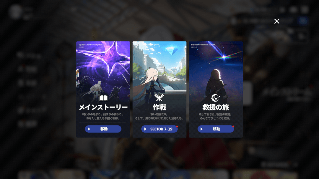 本作ではメインストリームと呼ばれるコンテンツは「メインストーリー」「作戦」「救援の旅」がある。どれもバトルがあるが、その中でも「作戦」は少しずつ強くなる敵相手に戦いを挑み、クリア状況に応じて様々な要素が解放されるバトルコンテンツのメインと呼べるだろう