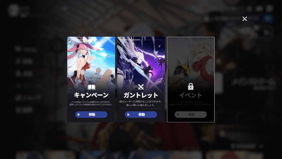 その他、周回することで育成素材がもらえる「キャンペーン」のほか、PvPが楽しめる「ガントレット」も存在する。「キャンペーン」と「ガントレット」はその中でも複数のコンテンツが存在し、もらえる報酬も様々だ。