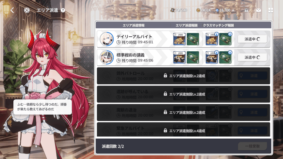 他にも、一定時間の経過で素材を獲得する「エリア派遣」や装備品を作成できる「製作工房」なども存在する。なお、本部の機能は基本的にバトルコンテンツである「作戦」をクリアしていくことで解放されるぞ。