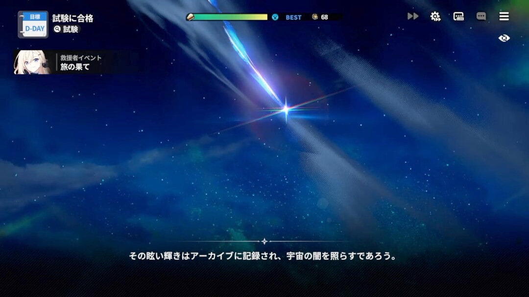 「救援の旅」は、作中の1年でキャラクターをトレーニングするコンテンツだ。定期的に訪れる試験(バトル)に勝利して、1年を無事乗り切るとトレーニング結果が「ステラーアーカイブ」として記録され、「救援の旅」以外のコンテンツでキャラクターにセットできる。