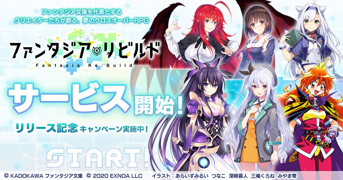 ファンタジア・リビルドはDMM GAMESとgumiが共同で開発を行う「無くした世界を紡ぐRPG」だ。本作はライトノベル「デート・ア・ライブ」「スレイヤーズ」「冴えない彼女の育て方」など人気作品のクロスオーバーRPGである。