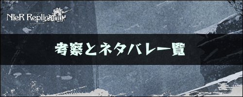 ニーアレプリカントリメイクの考察やネタバレを掲載!エンディング考察や今作の裏設定、過去作の繋がりなどを紹介しているので、ニーアレプリカント攻略の参考にどうぞ!