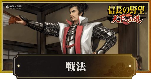 『信長の野望 天下への道』(信長天下道)の戦法を紹介。戦法の入手方法や強化方法、戦法の種類、戦法ポイントの集め方についても掲載しているため、信長天下道で戦法について知りたい時の参考にどうぞ。