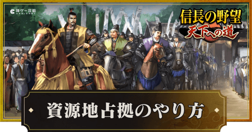 『信長の野望 天下への道』(信長天下道)の資源地占拠について紹介。占拠する手順や管理方法、資源地上限の増やし方についても掲載。信長天下道で資源地を占拠する時の参考にどうぞ。