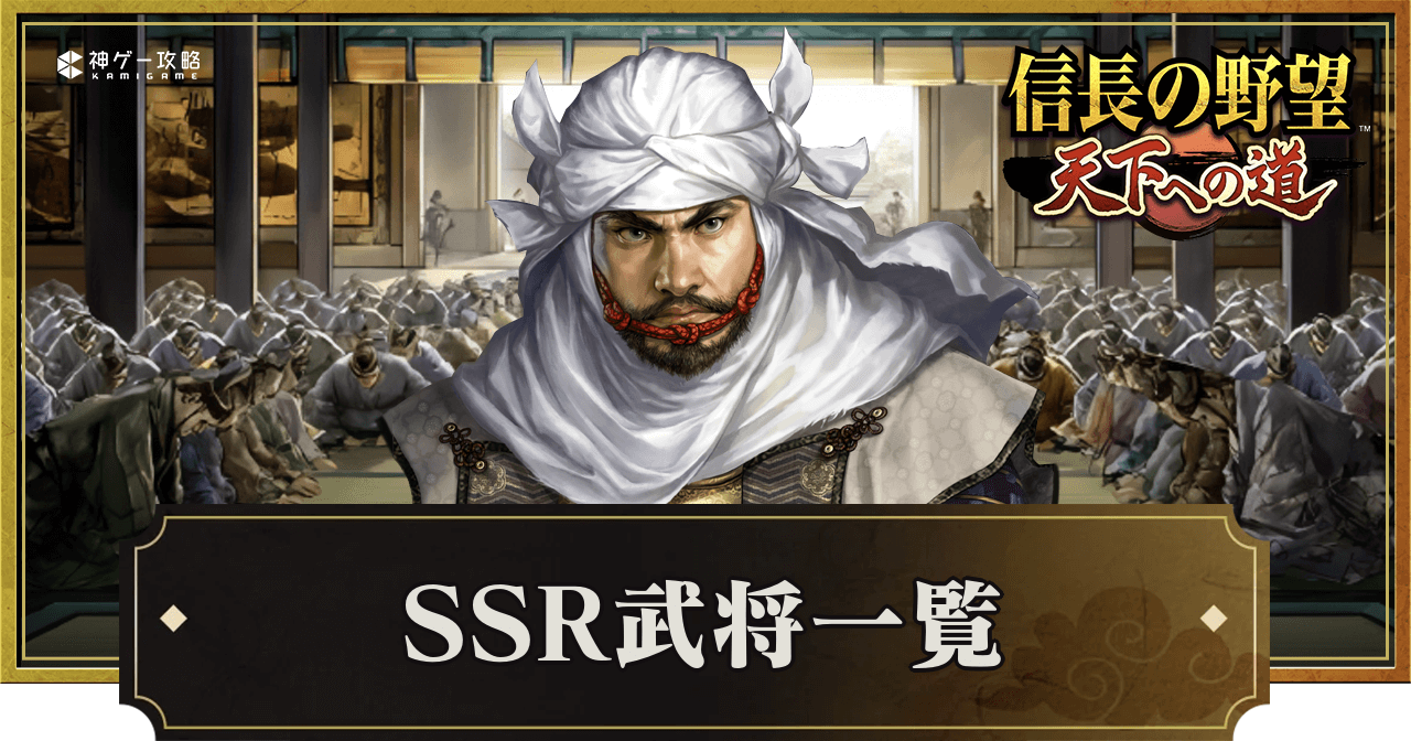 信長天下道(信長の野望 天下への道)に登場する品質SSRの武将を一覧で紹介。武将の統御や兵種適性なども掲載しているので、信長天下道でSSR武将を探したい時の参考にどうぞ。