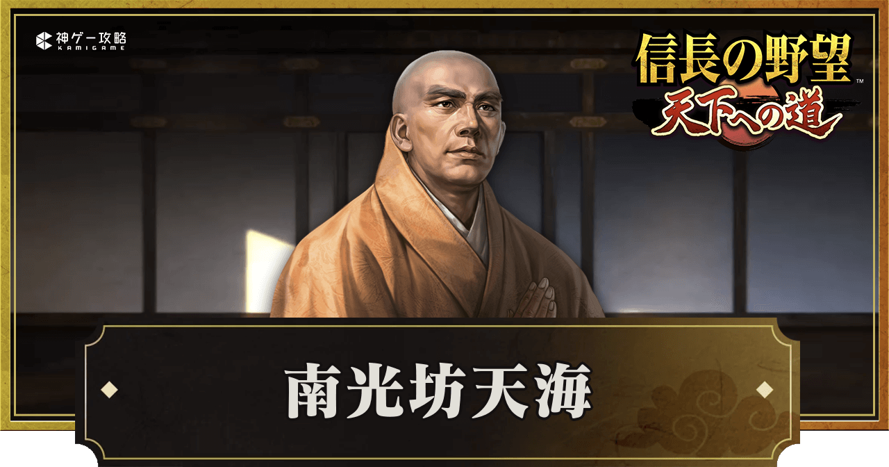 『信長の野望 天下への道』(信長天下道)の南光坊天海の評価と性能を紹介。戦法や詳細なステータスだけでなく、列伝や声優についても掲載しているため、信長天下道で南光坊天海について知りたい時の参考にどうぞ。