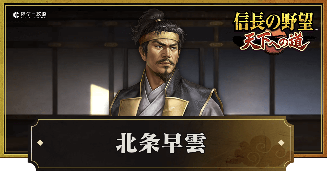 『信長の野望 天下への道』(信長天下道)の北条早雲の評価と性能を紹介。戦法や詳細なステータスだけでなく、列伝や声優についても掲載しているため、信長天下道で北条早雲について知りたい時の参考にどうぞ。