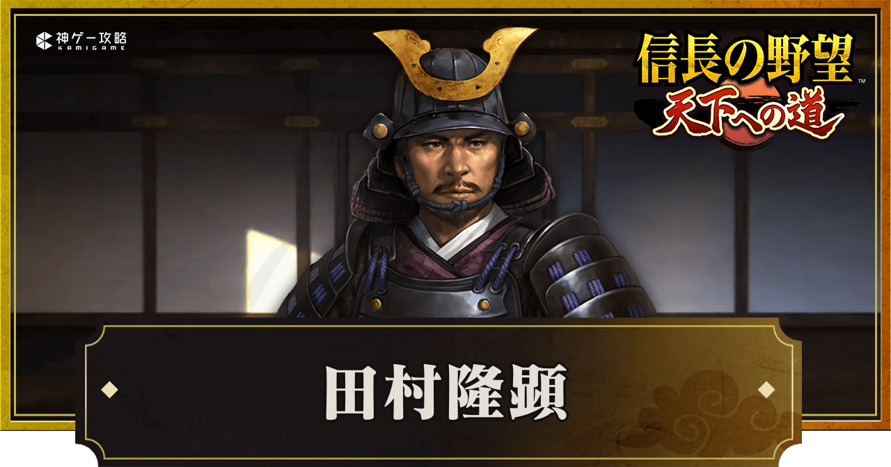 『信長の野望 天下への道』(信長天下道)の田村隆顕の評価と性能を紹介。戦法や詳細なステータスだけでなく、列伝や声優についても掲載しているため、信長天下道で田村隆顕について知りたい時の参考にどうぞ。