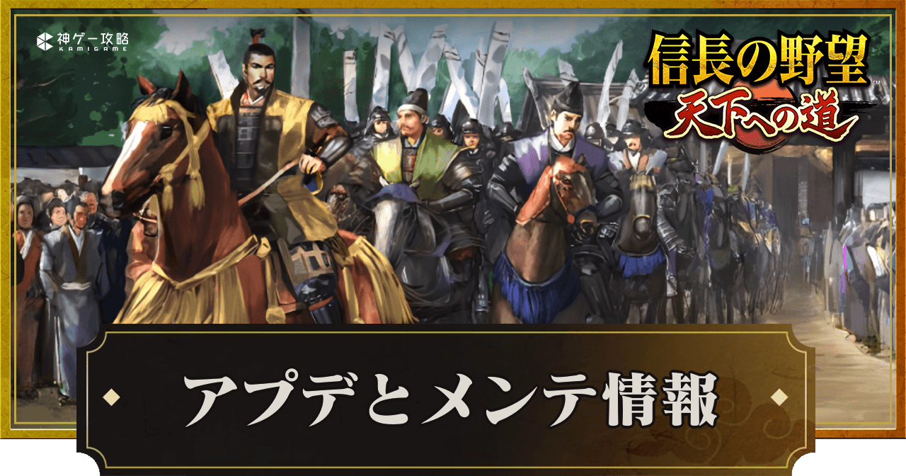 『信長の野望 天下への道』(信長天下道)のアップデートとメンテナンス情報を紹介。最新メンテナンス情報やアップデート予定についても掲載しているため、信長天下道のアプデとメンテについて知りたい時の参考にどうぞ。