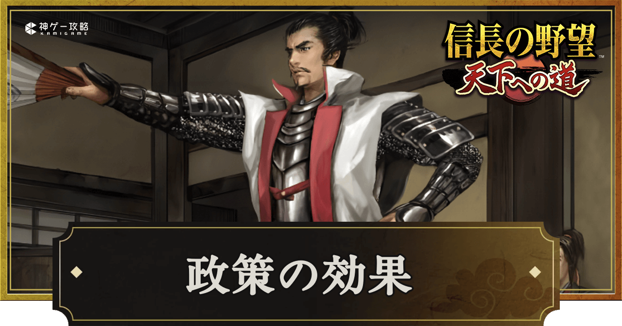 『信長の野望 天下への道』(信長天下道)の政策を紹介。政策の種類や効果、使うタイミングやコツについても掲載しているため、信長天下道で政策について知りたい時の参考にどうぞ。
