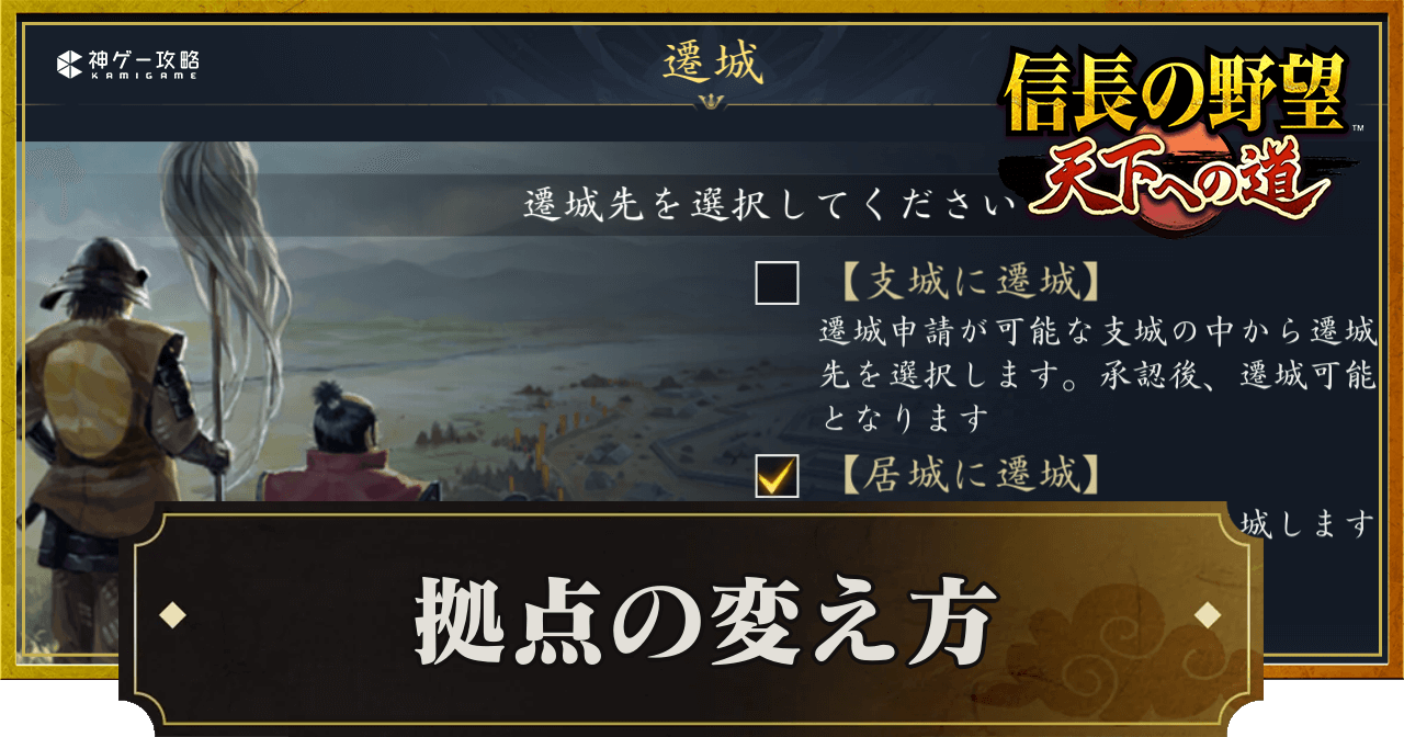 『信長の野望 天下への道』(信長天下道)の拠点の変え方(遷城)を紹介。拠点を変えるメリットについても掲載しているため、信長天下道で遷城について知りたい時の参考にどうぞ。