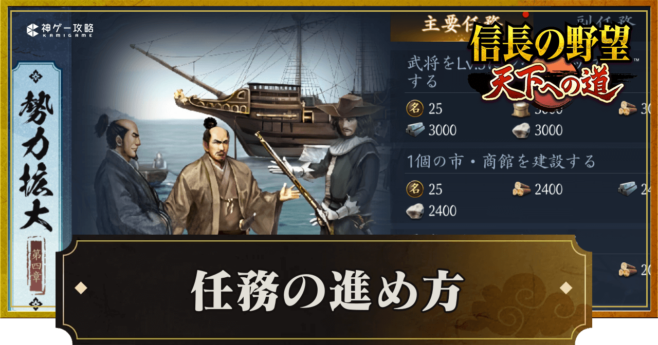 『信長の野望 天下への道』(信長天下道)の任務を紹介。任務の進め方や優先度についても掲載しているため、信長天下道で任務について知りたい時の参考にどうぞ。