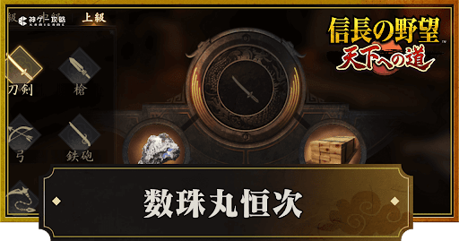 『信長の野望 天下への道』(信長天下道)の数珠丸恒次について紹介。装備の性能や強化される能力、どこで入手するかについても掲載しているため、信長天下道で数珠丸恒次について知りたい時の参考にどうぞ。