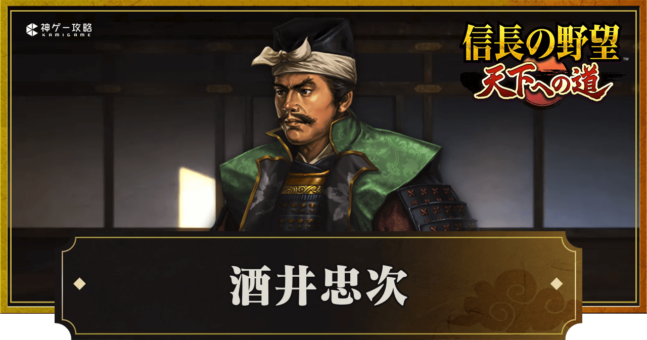 『信長の野望 天下への道』(信長天下道)の酒井忠次の評価と性能を紹介。戦法や詳細なステータスだけでなく、列伝や声優についても掲載しているため、信長天下道で酒井忠次について知りたい時の参考にどうぞ。