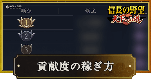 『信長の野望 天下への道』(信長天下道)の貢献度を紹介。貢献度の稼ぎ方(上げ方)やメリットについても掲載しているため、信長天下道で貢献度について知りたい時の参考にどうぞ。