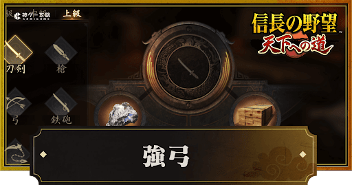 『信長の野望 天下への道』(信長天下道)の強弓について紹介。装備の性能や強化される能力、どこで入手するかについても掲載しているため、信長天下道で強弓について知りたい時の参考にどうぞ。