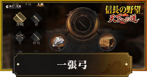 『信長の野望 天下への道』(信長天下道)の一張弓について紹介。装備の性能や強化される能力、どこで入手するかについても掲載しているため、信長天下道で一張弓について知りたい時の参考にどうぞ。