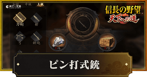 『信長の野望 天下への道』(信長天下道)のピン打式銃について紹介。装備の性能や強化される能力、どこで入手するかについても掲載しているため、信長天下道でピン打式銃について知りたい時の参考にどうぞ。