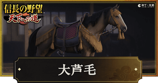『信長の野望 天下への道』(信長天下道)の名馬「大芦毛」について紹介。性能や強化される能力、どこで入手するかについても掲載しているため、信長天下道で大芦毛について知りたい時の参考にどうぞ。