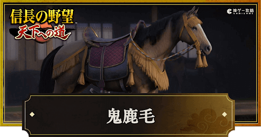 『信長の野望 天下への道』(信長天下道)の名馬「鬼鹿毛」について紹介。性能や強化される能力、どこで入手するかについても掲載しているため、信長天下道で鬼鹿毛について知りたい時の参考にどうぞ。