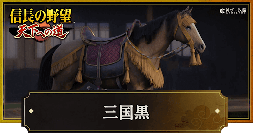 『信長の野望 天下への道』(信長天下道)の名馬「三国黒」について紹介。性能や強化される能力、どこで入手するかについても掲載しているため、信長天下道で三国黒について知りたい時の参考にどうぞ。