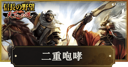 『信長の野望 天下への道』(信長天下道)の戦法「二重咆哮」を紹介。効果や性能、所持や伝授できる武将についても掲載しているため、信長天下道で二重咆哮について知りたい時の参考にどうぞ。