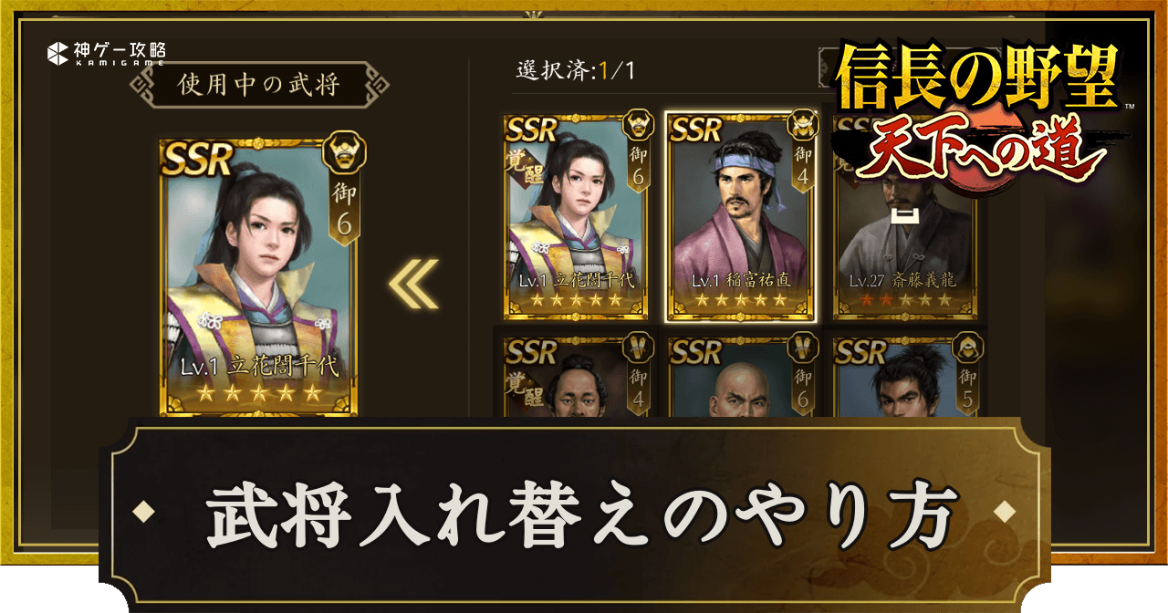 『信長の野望 天下への道』(信長天下道)の武将入れ替えを紹介。武将入れ替えのやり方や注意点についても掲載しているため、信長天下道で武将入れ替えについて知りたい時の参考にどうぞ。