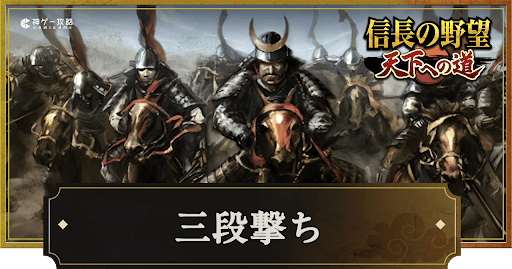 『信長の野望 天下への道』(信長天下道)の典籍戦法「三段撃ち」を紹介。効果や性能、入手条件についても掲載しているため、信長天下道で三段撃ちについて知りたい時の参考にどうぞ。