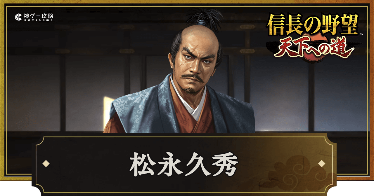 『信長の野望 天下への道』(信長天下道)の松永久秀の評価と性能を紹介。戦法や詳細なステータスだけでなく、列伝や声優についても掲載しているため、信長天下道で松永久秀について知りたい時の参考にどうぞ。