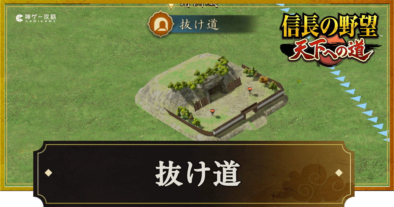 『信長の野望 天下への道』(信長天下道)の抜け道を紹介。抜け道の使い方や抜け道の設置方法についても掲載しているため、信長天下道で抜け道について知りたい時の参考にどうぞ。