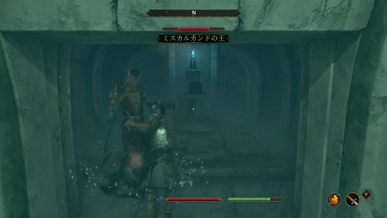 大ウィルキンド石を回収したらまっすぐ進み、奥にいるミスカルカンドの王を倒そう。ミスカルカンドの王を倒すと、帰り道用のルートで使える鍵を持っているので、遺体から回収すると良い。