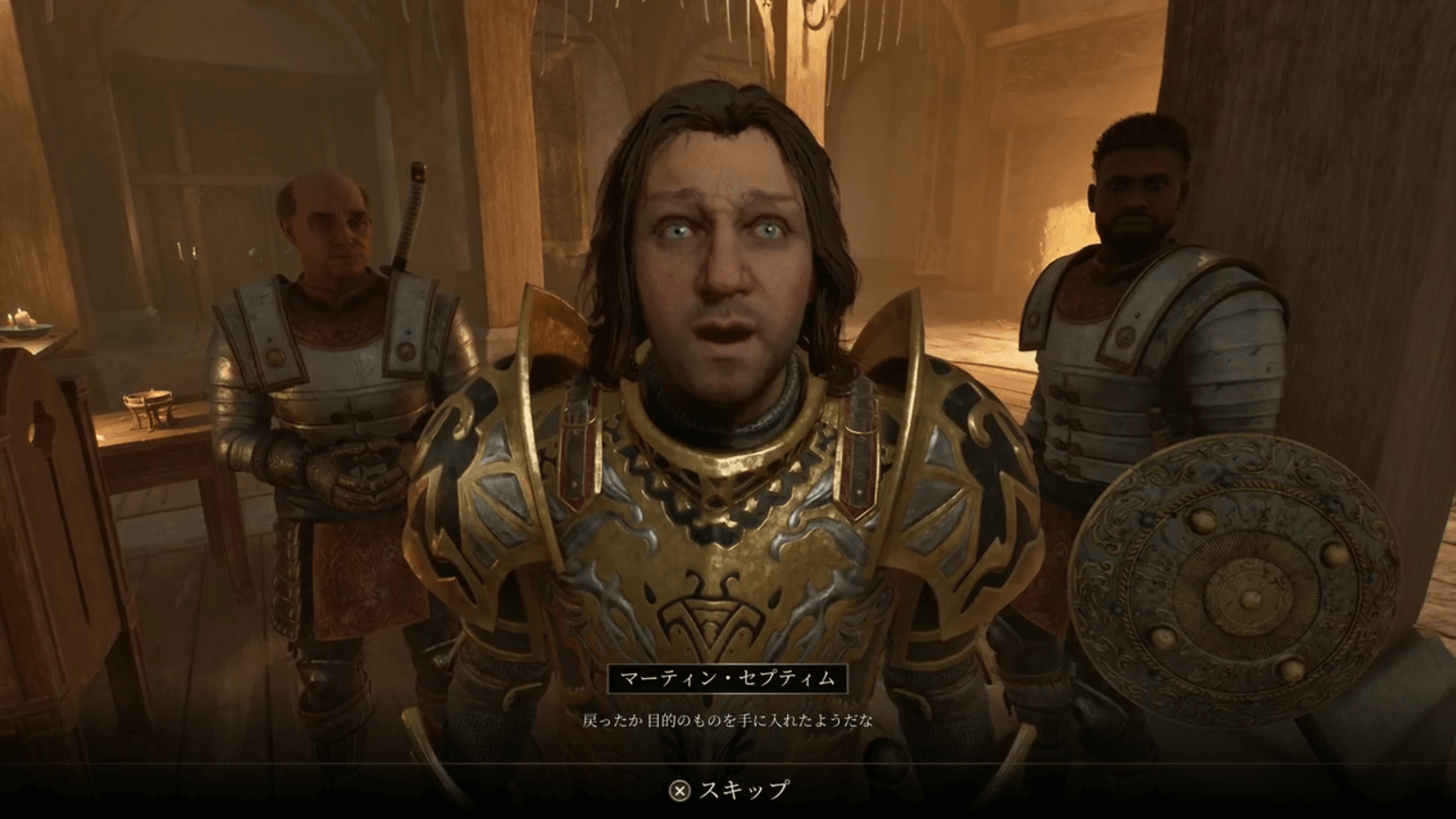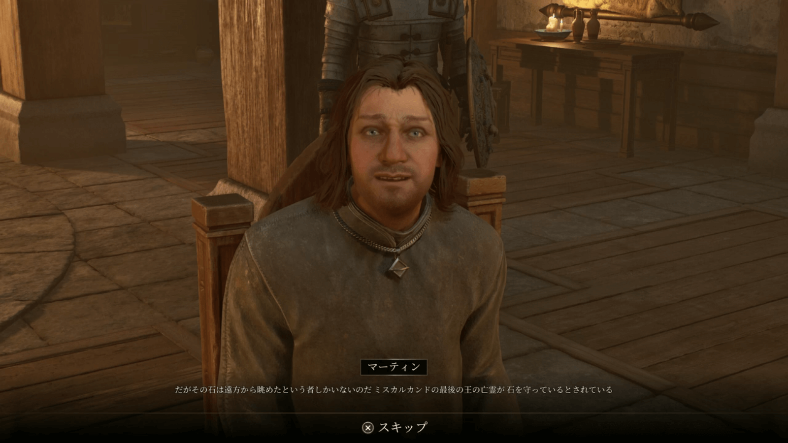 無事に外へ出られたら、マーティンに報告しよう。マーティンは鎧を着て準備しており、儀式には印石が必要になると話し、次のメインクエストを受注できる。