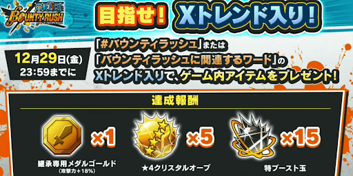 「#バウンティラッシュ」または「バウンティラッシュに関連するワード」がXのトレンドに入った場合、報酬が配布されるキャンペーンが開催されていた。