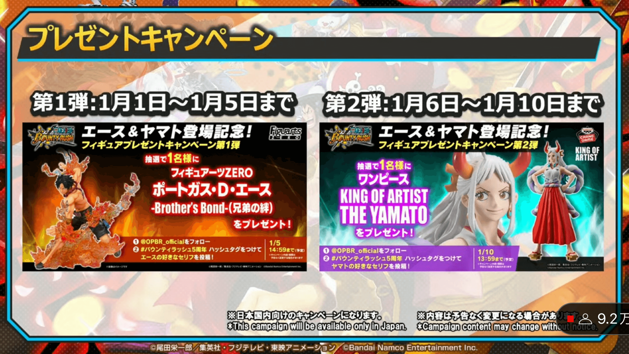 | 期間 | エース:1月1日〜1月5日 ヤマト:1月6日〜1月10日 |