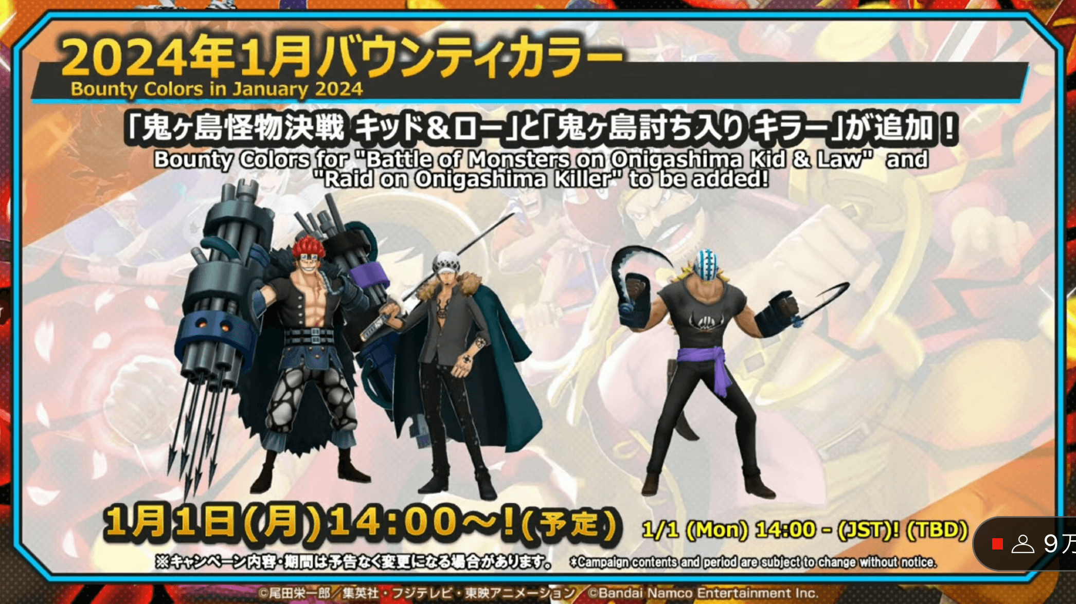 キッド&ローと鬼ヶ島キラーのバウンティカラーが2024年1月より登場する。他のプレイヤーとは異なる衣装でプレイできる。
