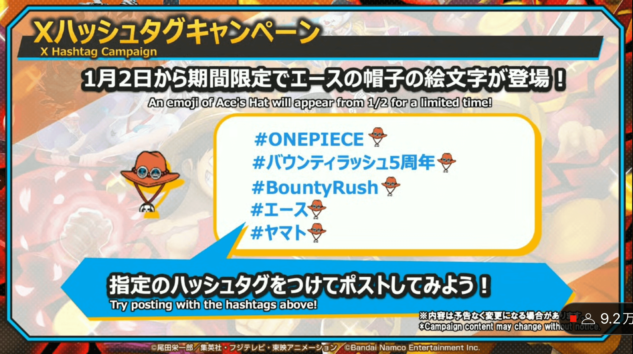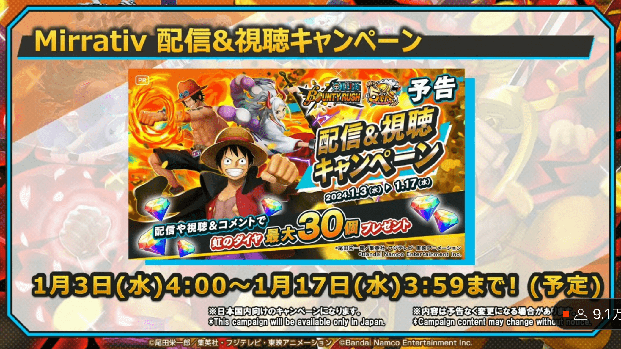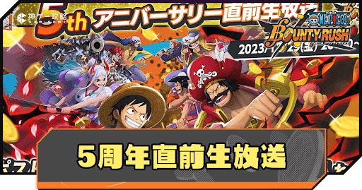ワンピースバウンティラッシュの5周年直前生放送で公開された情報をまとめて紹介。アプリ内のキャンペーン情報や生放送当日の速報もいち早くお届けしているので、ONEPIECEバウンティラッシュをプレイする際の参考にどうぞ。