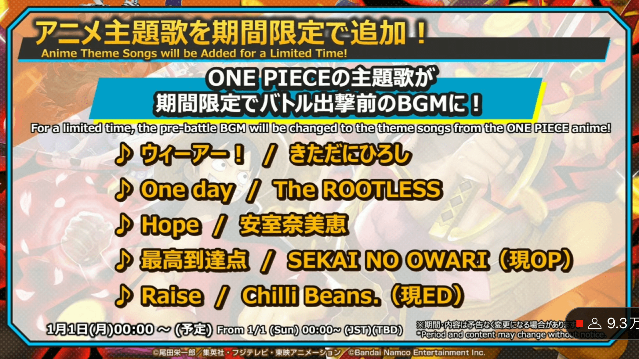 アニメ主題歌が期間限定で追加される。バトル出撃中のBGMが豪華になるので音楽にも注目してゲームプレイしてみよう。