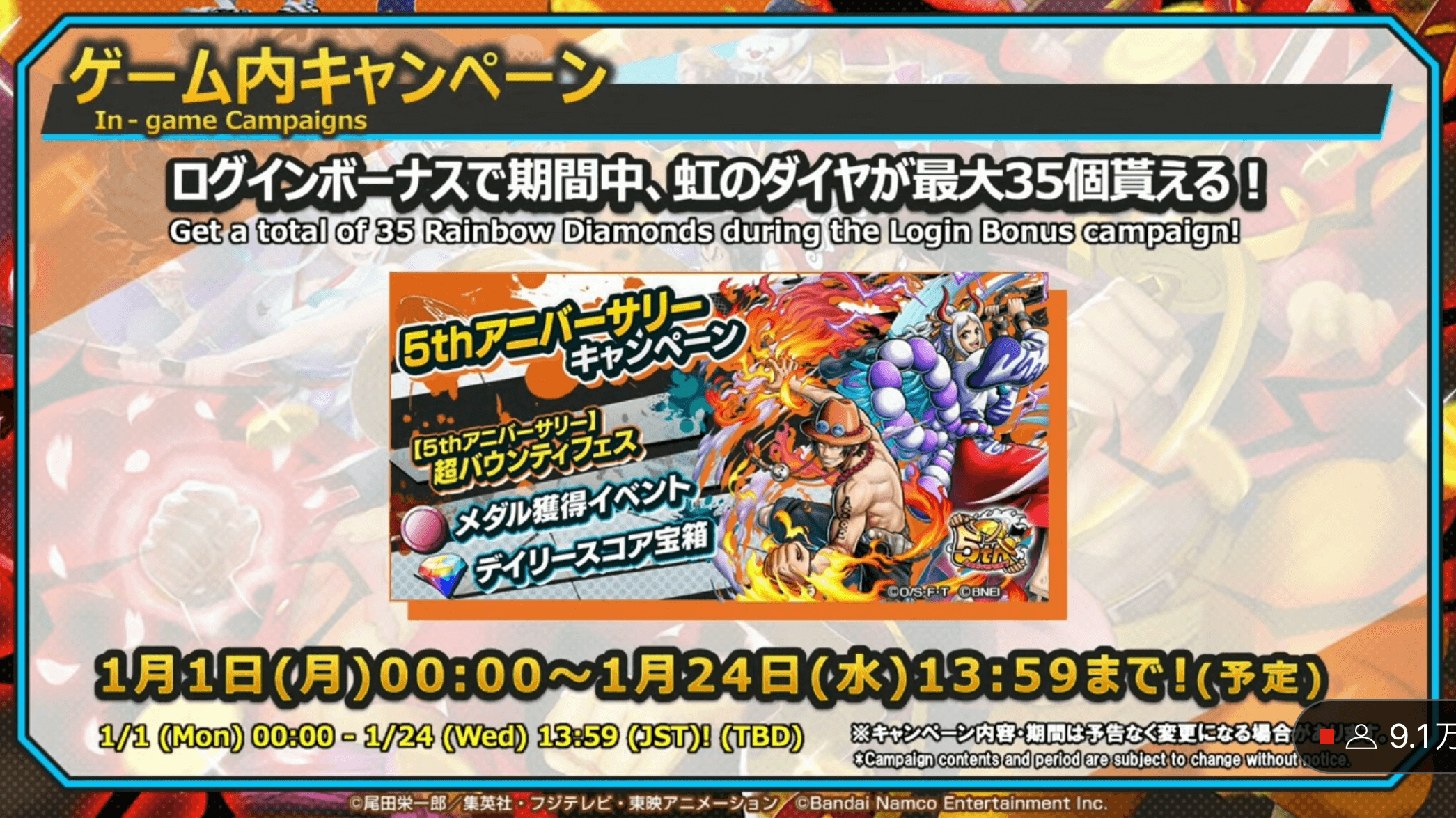 | 開催期間 | 1月1日(月)00:00〜未定 |