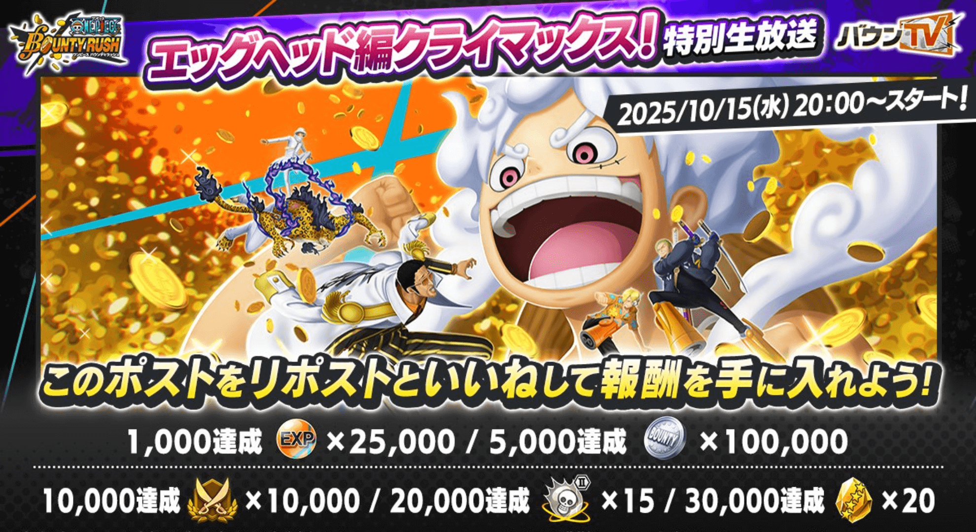 【バウンティラッシュ】エッグヘッドクライマックス特別生放送まとめ