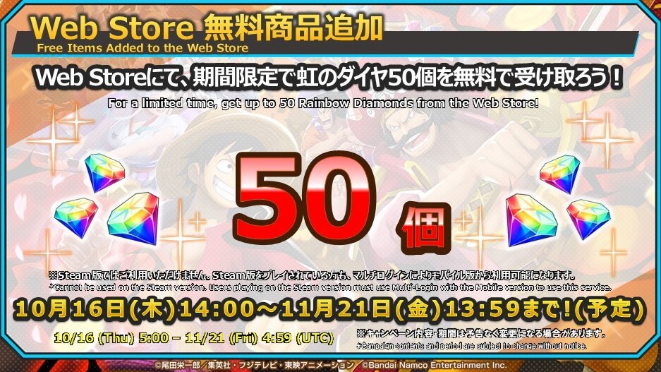 ウェブストアでダイヤ50個配布開始