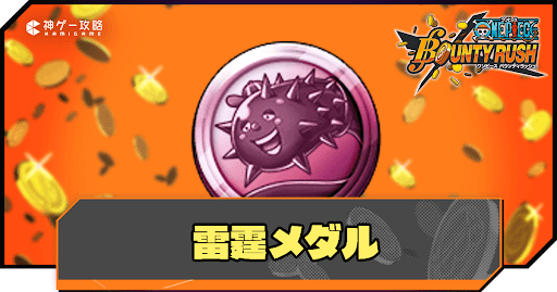 ワンピースバウンティラッシュの「雷霆メダル」について紹介。生成キャラや追加特性を始めとした基本情報に加え、雷霆メダルと相性の良いメダル編成や装備キャラについても解説しているので、雷霆メダルを強化する際の参考にどうぞ。