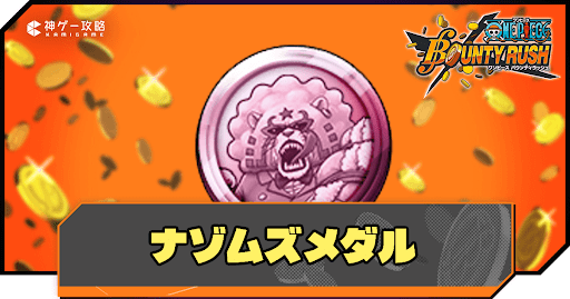 ワンピースバウンティラッシュの「ナゾムズメダル」について紹介。生成キャラや追加特性を始めとした基本情報に加え、ナゾムズメダルと相性の良いメダル編成や装備キャラについても解説しているので、ナゾムズメダルを強化する際の参考にどうぞ。
