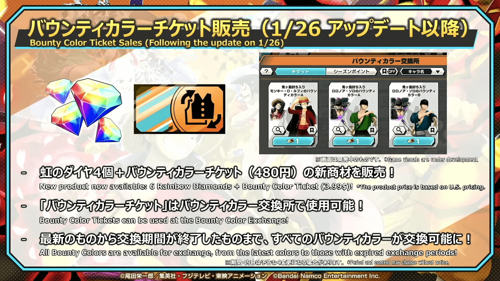 過去のバウンティカラーが入手できるチケットが販売される。最新のカラーから、交換期間が終わったものまで入手できるため、好きなキャラのバウンティカラーが欲しい場合は、バウンティカラーチケットを活用しよう。