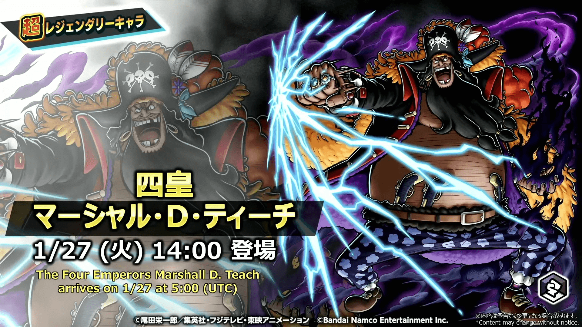 新超フェスキャラとして、四皇黒ひげの実装が告知された。四皇黒ひげは、黒白の2属性を持った能力者特攻アタッカーだ。機動力に難はあるが、四皇ニカやサターン聖を狩れる性能を持った魅力的なキャラ。
