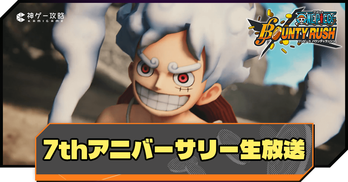 ワンピースバウンティラッシュの7周年/7thアニバーサリー生放送(公式生放送/生配信)の予想内容を紹介。新超フェスキャラや1vs1バトルモードの情報についても予想しているので、ONEPIECEバウンティラッシュをプレイする際の参考にどうぞ。