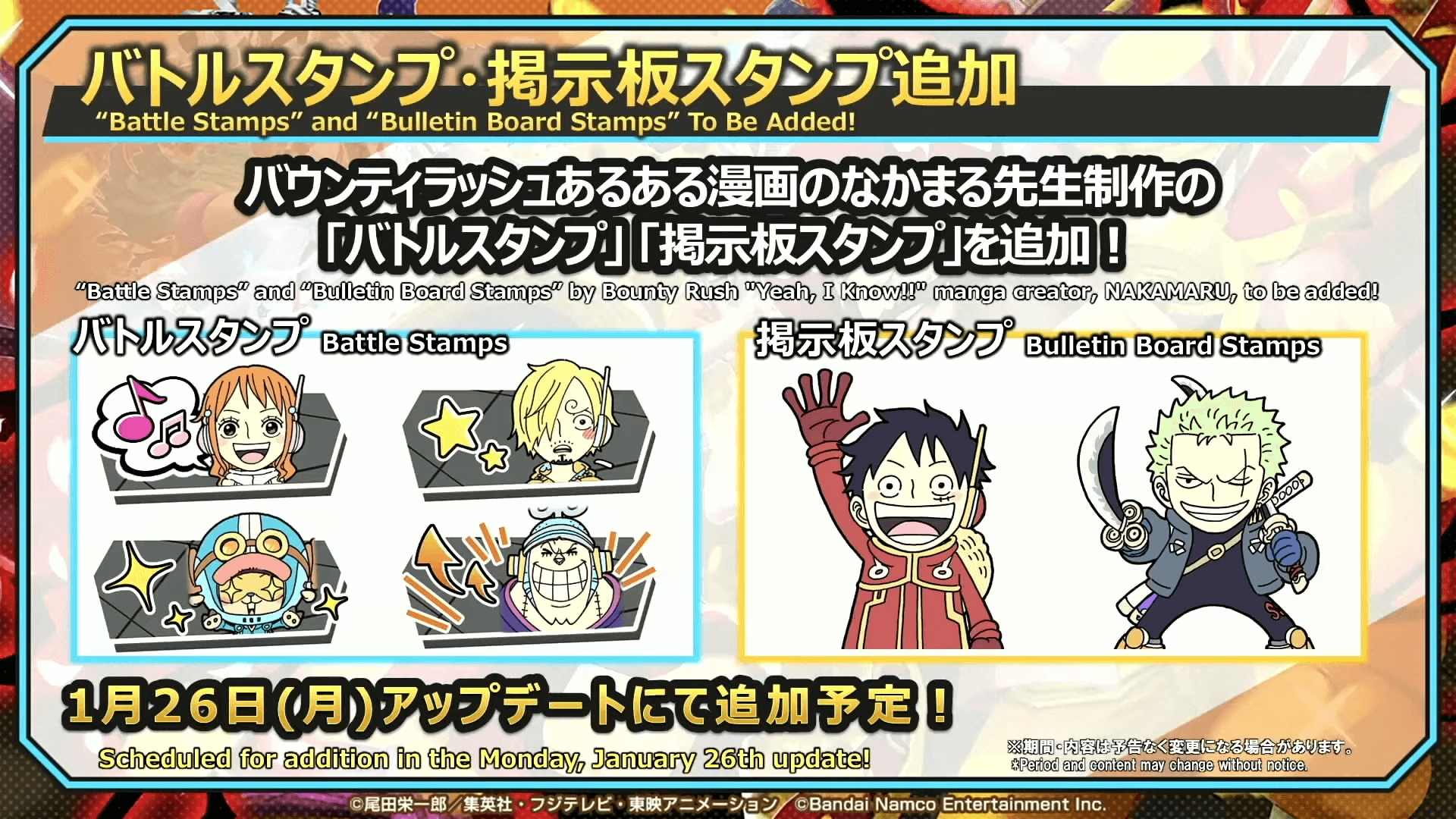 バウンティラッシュ内で使えるスタンプが追加。1月26日のアップデートから使用できるようになるようだ。