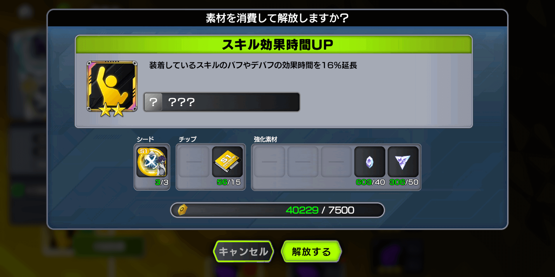 2素材を消費してアビリティを解放する