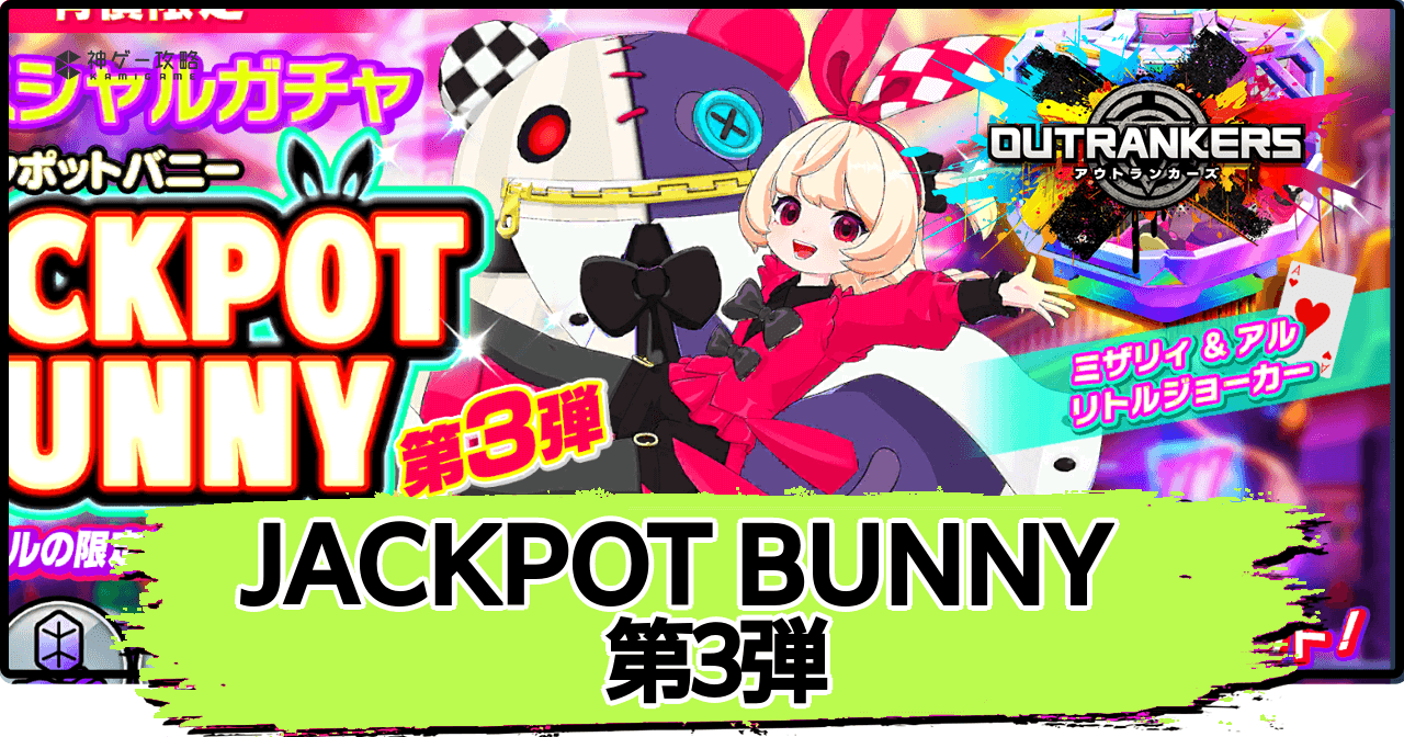 アウトランカーズのJackpotBunny第3弾は引くべきかを紹介。JackpotBunny第3弾は引くべきか?についてや排出確率、新登場のギアについても掲載しているので、アウトランカーズでスペシャルガチャについて知りたい時の参考にどうぞ。