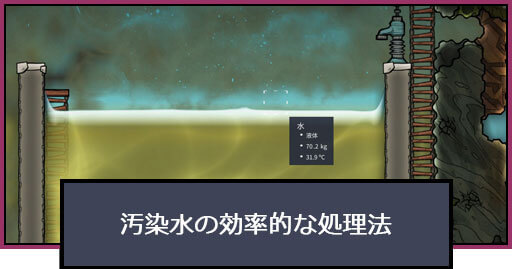 Oxygen Not Includedで汚染水を効率的に処理する方法を紹介。オススメ処理法や処理のコツに加え、汚染水の性能も掲載しているので、Oxygen Not Includedで汚染水の処理法に困っている方は参考にどうぞ。