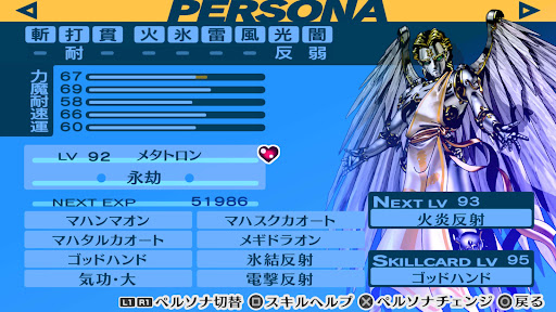 ペルソナ3ポータブル(P3P)における、メタトロンの性能と入手方法を紹介。初期ステータスやレベルアップで覚えるスキル、入手可能なスキルカードや受胎アイテムもまとめているので、ペルソナ3Pを攻略する際の参考にどうぞ!